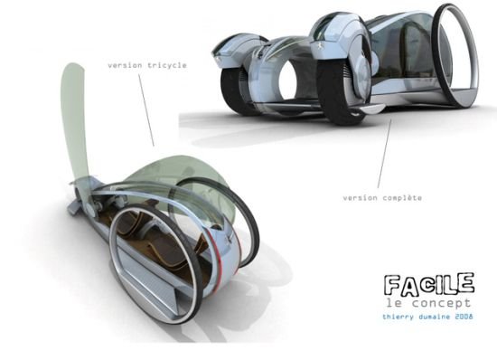The Peugeot Facile is one electric vehicle that sure knows how to adapt to changing conditions and needs. Designed by Thierry Dumaine, the concept car can shift from being a complete car to a tricycle or even a monocycle so that it fits the needs of the driver.